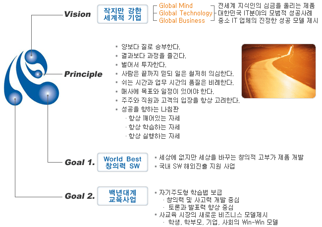 소프트웨어로 창의적 사고분야에서 작지만 강한 세계적 기업이 되는 것이다.